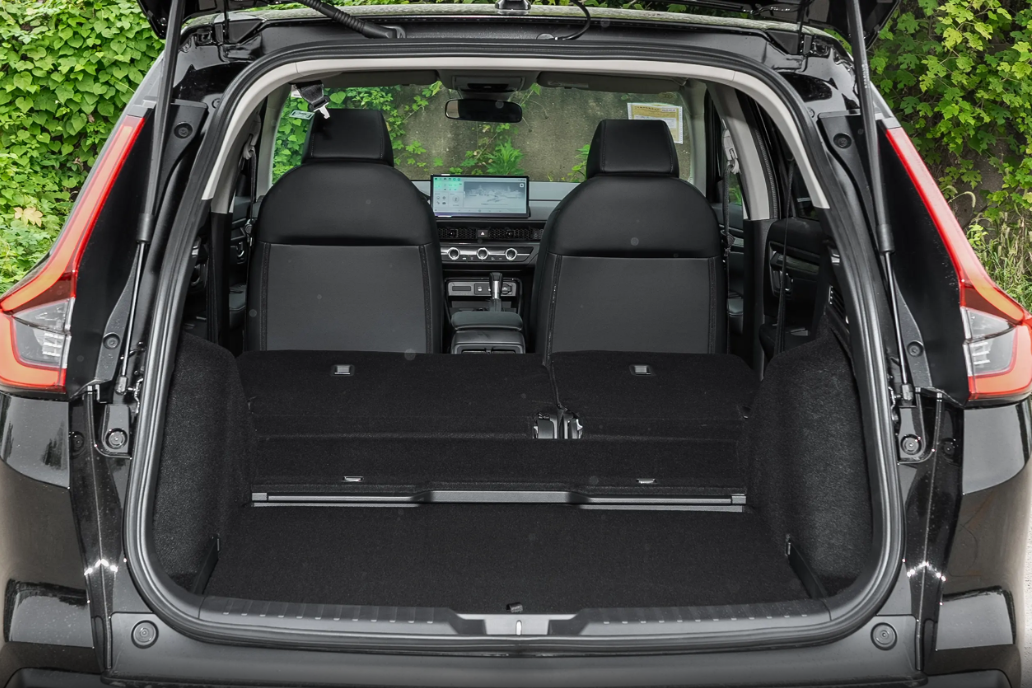后备厢储物空间方面,在坐满员的情况下,CR-V全球30年荣耀款的后备厢依然拥有不错的载物空间。如果平时搬运大件物品的时候,还可以将后排座椅放倒,放倒之后立马就变成一个较大的后备厢空间。此次试驾的时候我试过,把CR-V全球30年荣耀款后排全放倒,能放下一个小的折叠自行车,还能塞几个大行李箱,空间利用率很不错。不像有些车,看着挺大,后备箱却小得可怜,装不了多少东西就满了。