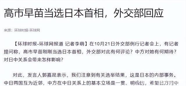 中方回应快,两个半小时后。郭嘉昆先说尊重日本内政,结果是内部事。然后转提醒,没贺词。国际注意,这跟以往不同,如石破茂时有贺电。高市背景是原因,她4月访台重申台湾关日本,北京抗议。回应忠告针对她立场,提醒守四个政治文件,履历史台湾承诺,推互惠。